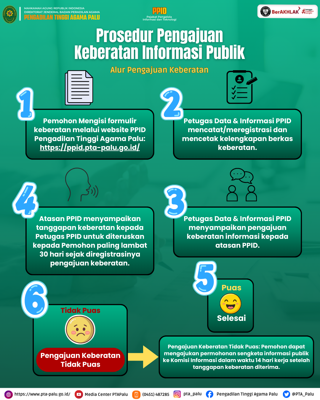 PPID PTA Palu berkomitmen memberikan pelayanan informasi yang transparan, cepat, dan akuntabel sesuai dengan UU KIP.